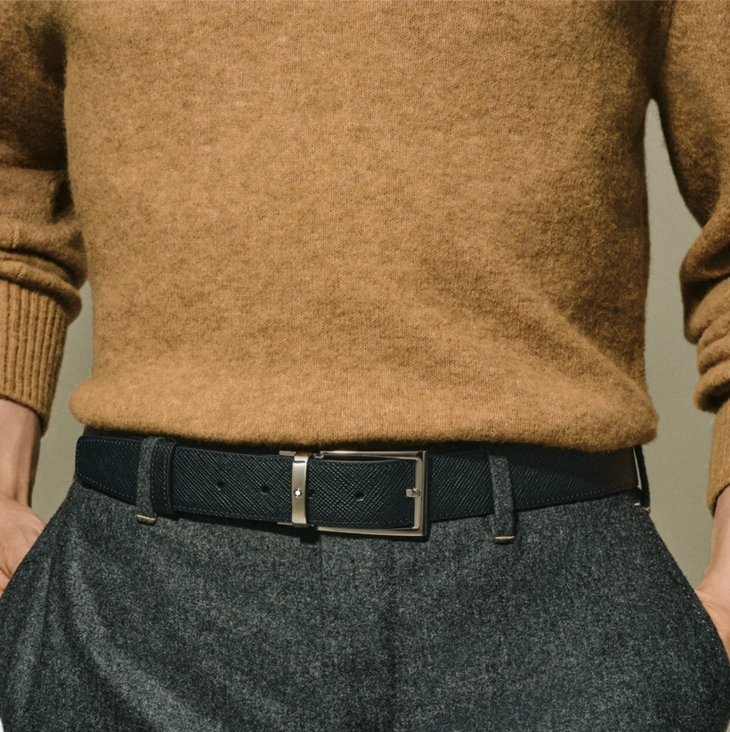Двухсторонний мужской ремень Montblanc: кожа черного и коричневого цвета 35 мм от магазина премиальных ручек Premium Pens в Новороссийске.